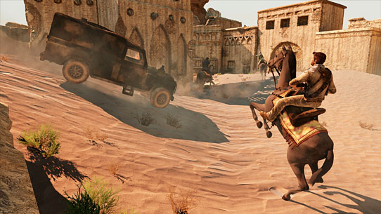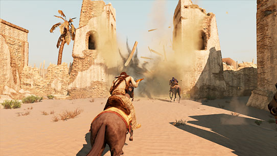 The gates explode as Nate and the Bedouin escape the village.