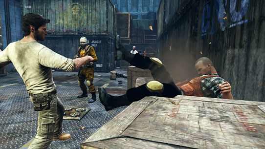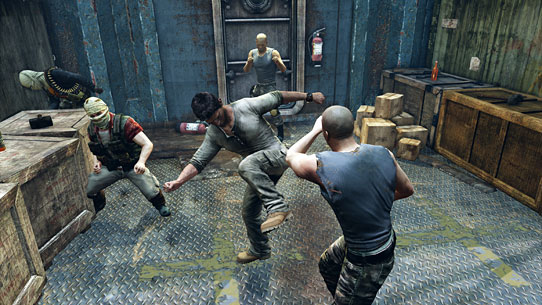 Fighting a hallucinating Cutter, the player has to avoid damage while not hurting Drake's friend in the process.